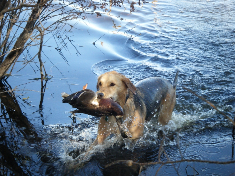 Maddux pulls another mallard from the water. One of 24 ducks we shot that morning including 6 Maddux retrieved from the water.