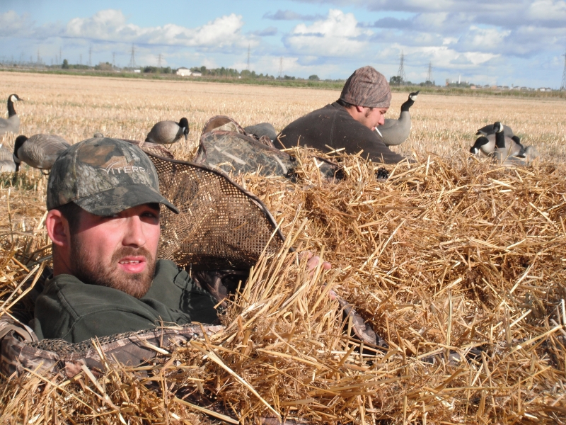 Mid afternoon near Winnipeg, Manitoba. 225 decoys, a bird dog, and 7 new friends.